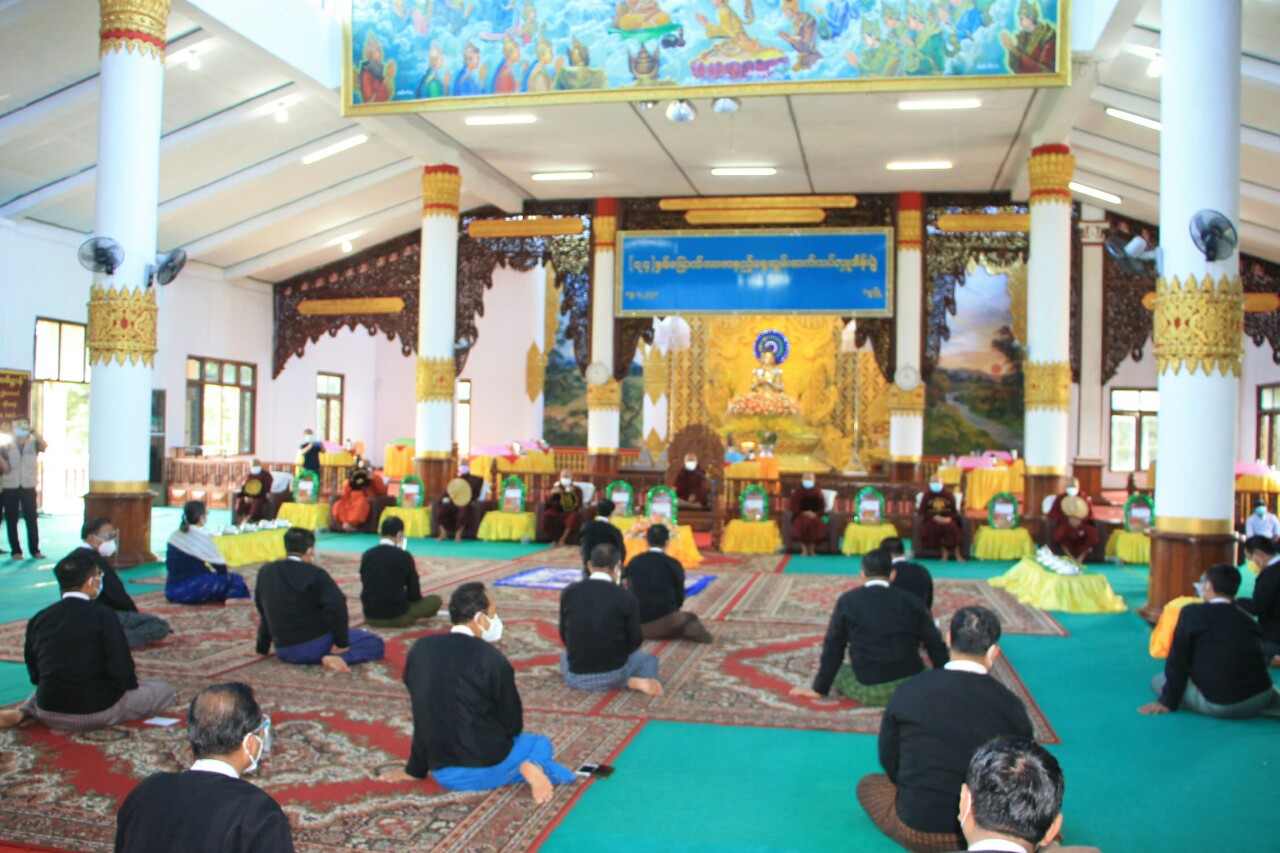 ထို့နောက် ဆရာတော်၊ သံဃာတော်အရှင်သူမြတ်များက မေတ္တာသုတ်ပရိတ်တရားတော်များ ချီးမြှင့်တော်မူကြပြီး ပဲခူးတိုင်းဒေသကြီးစီမံအုပ်ချုပ်ရေးကောင်စီ ဥက္ကဋ္ဌ ဦးမျိုးဆွေဝင်း၊ တိုင်းဒေသကြီးတရားသူကြီးချုပ်နှင့် ကောင်စီအဖွဲ့ဝင်များက ဆရာတော်၊ သံဃာတော် အရှင်သူမြတ် များအား လှူဖွယ်ဝတ္ထုပစ္စည်းများ ဆက်ကပ်လှူဒါန်းကာ လှူဒါန်းမှုအစုစုအတွက် ပဲခူးမြို့၊ မြို့မ စာသင်တိုက်ပဓာန နာယကဆရာတော် အဘိဓဇမဟာရဌဂုရု၊ နိုင်ငံတော်ဩဝါဒါစရိယ၊ ဘဒ္ဒန္တဂန္ဓမာ မဟာထေရ်မြတ်ထံမှ အနုမောဒနာတရားနာယူ၍ ရေစက်သွန်းချ အမျှအတမ်းပေးဝေကြသည်။