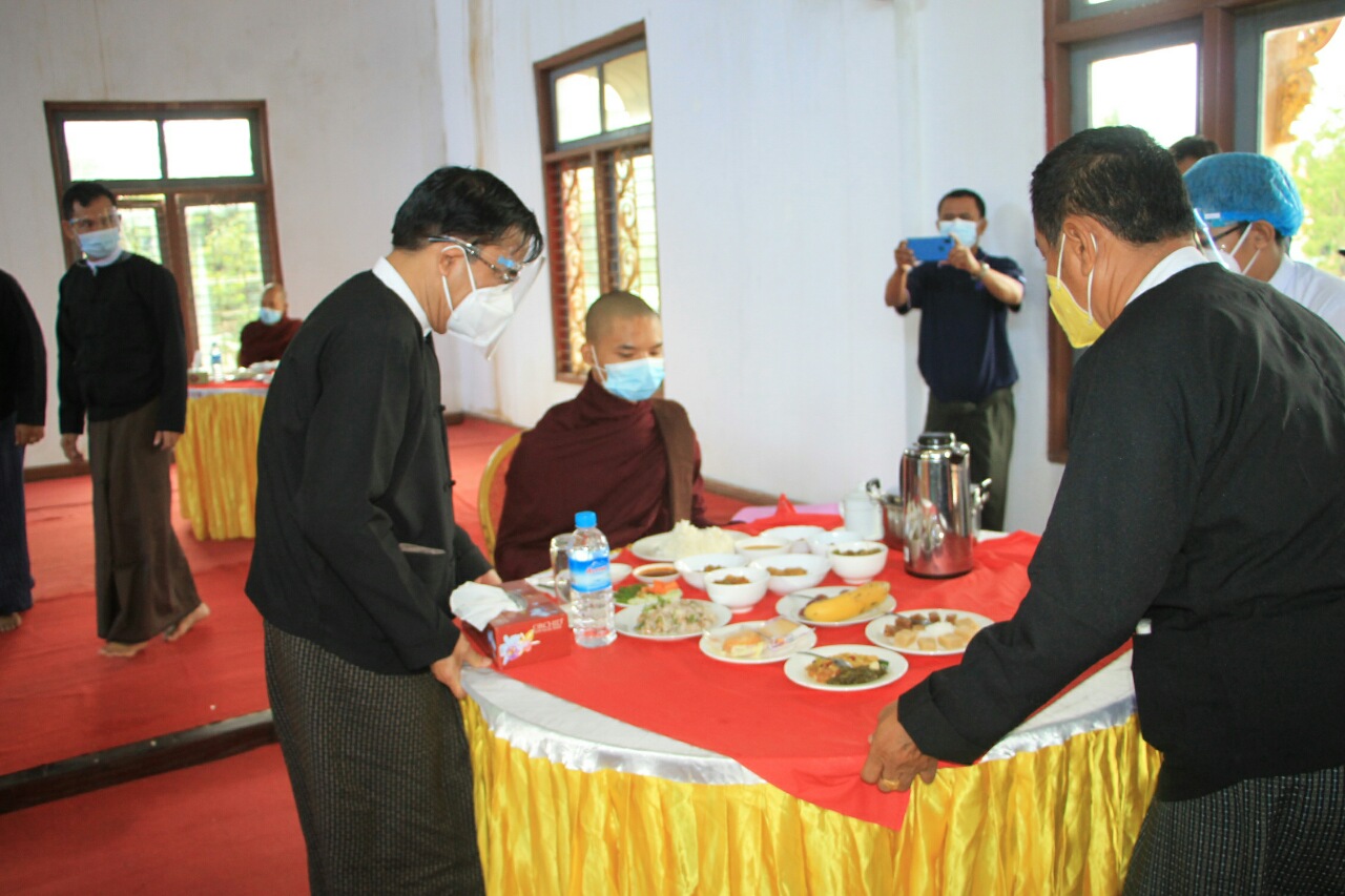 ယင်းနောက် ဗုဒ္ဓသာသနံ စိရံတိဋ္ဌတု သုံးကြိမ်ရွတ်ဆိုဆုတောင်း၍ အခမ်းအနားကိုရုပ်သိမ်းပြီး ဆရာတော်၊ သံဃာတော်အရှင်သူမြတ်များအား ပဲခူးတိုင်းဒေသကြီးစီမံအုပ်ချုပ်ရေးကောင်စီဥက္ကဋ္ဌ ဦးမျိုးဆွေဝင်းနှင့် ကောင်စီဝင်များက နေ့ဆွမ်းဆက်ကပ်လှူဒါန်းခဲ့ကြကြောင်း သတင်းရရှိသည်။