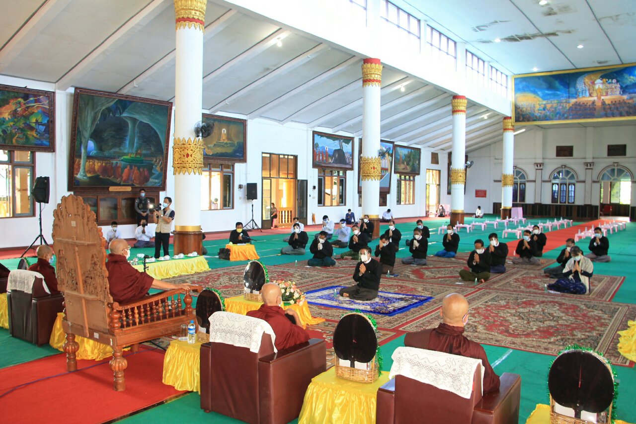 ရှေးဦးစွာ ဆရာတော်၊ သံဃာတော်အရှင်သူမြတ်များ၊ ပဲခူးတိုင်းဒေသကြီးစီမံအုပ်ချုပ်ရေး ကောင်စီ ဥက္ကဋ္ဌ ဦးမျိုးဆွေဝင်း၊ တိုင်းဒေသကြီးတရားသူကြီးချုပ်နှင့် ကောင်စီအဖွဲ့ဝင်များ၊ ဌာနဆိုင်ရာအကြီးအကဲများက နမောတဿ သုံးကြိမ်ရွတ်ဆို ဘုရားကန်တော့၍ အခမ်းအနားကို ဖွင့်လှစ်ပြီး ပဲခူးမြို့၊ မြို့မစာသင်တိုက် ပဓာနနာယကဆရာတော် အဘိဓဇမဟာရဌဂုရု၊ နိုင်ငံတော် ဩဝါဒါစရိယ၊ ဘဒ္ဒန္တဂန္ဓမာ မဟာထေရ်မြတ်ထံမှ ငါးပါးသီလခံယူဆောက်တည်ကြသည်။