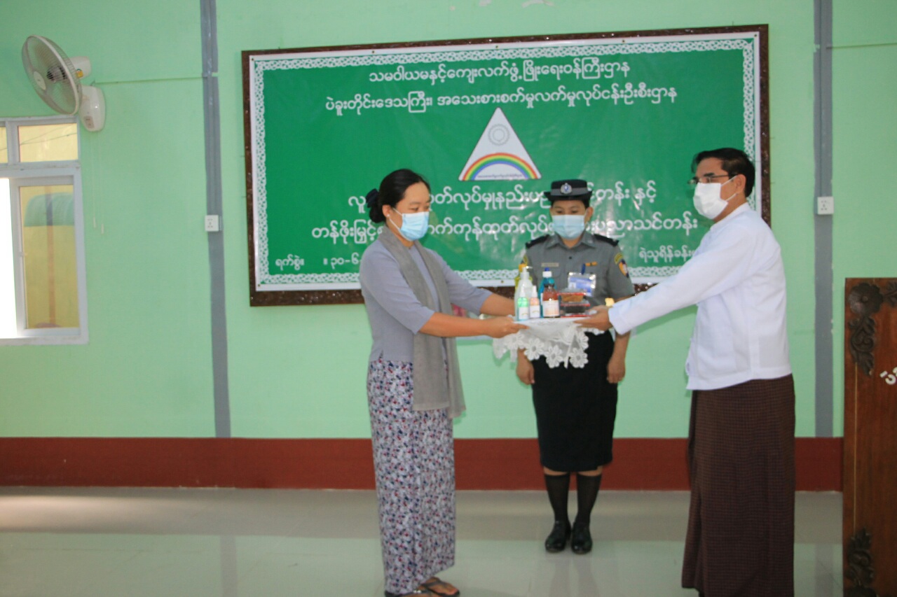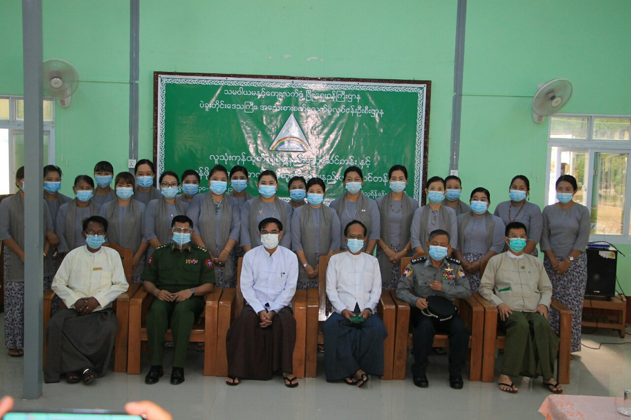 ထို့နောက် ပဲခူးတိုင်းဒေသကြီးစီမံအုပ်ချုပ်ရေးကောင်စီ ဥက္ကဋ္ဌ ဦးမျိုးဆွေဝင်းက သင်တန်းသူ များကိုယ်စား ဒေါ်မင်းမင်းစိုးအား သင်တန်းဆင်းလက်မှတ်များ ပေးအပ်ခဲ့ပြီး သင်တန်းသူ ဒေါ်အေးငြိမ်းဆုမှ ကျေးဇူးတင်စကား ပြန်လည်ပြောကြားကာ သင်တန်းသူတစ်ဦးမှ သင်တန်းတွင် ထုတ်လုပ်ထားသည့် တန်ဖိုးမြှင့်ထုတ်ကုန်များအား အမှတ်တရ လက်ဆောင်ပေးအပ်ခဲ့သည်။