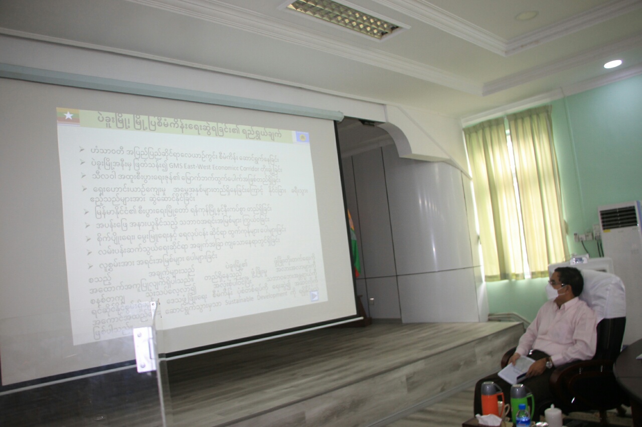 ထို့နောက် မြို့ပြနှင့်အိမ်ရာဖွံ့ဖြိုးရေးဦးစီးဌာန(ရုံးချုပ်)မှ ဒုတိယညွှန်ကြားရေးမှူးချုပ် ဦးဇော်ဇော်အေး က ပဲခူးဒေသ၌ ဇုန်အလိုက် တိုးချဲ့ဆောင်ရွက်သင့်သည့် မြို့ပြအဆင့်မြှင့်စီမံကိန်းများကိုလည်းကောင်း၊ ဒုတိယညွှန်ကြားရေးမှူး ဦးသက်ဖြိုးဝေက တောင်ငူဒေသ၌ ဇုန်အလိုက် တိုးချဲ့ဆောင်ရွက်သင့်သည့် မြို့ပြအဆင့်မြှင့်စီမံကိန်းများကိုလည်းကောင်း Power Point ဖြင့် အသေးစိတ် ရှင်းလင်းတင်ပြခဲ့ရာ၊ တိုင်းဒေသကြီးအစိုးရအဖွဲ့ဝင် ဝန်ကြီးများနှင့် တိုင်းဒေသကြီးအဆင့် ဌာနဆိုင်ရာများမှ ဖြည့်စွက်ရှင်းလင်း အကြံပြုတင်ပြခဲ့ကြသည်။