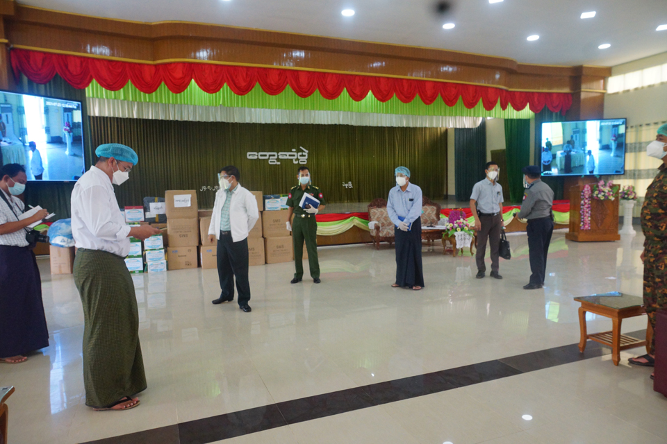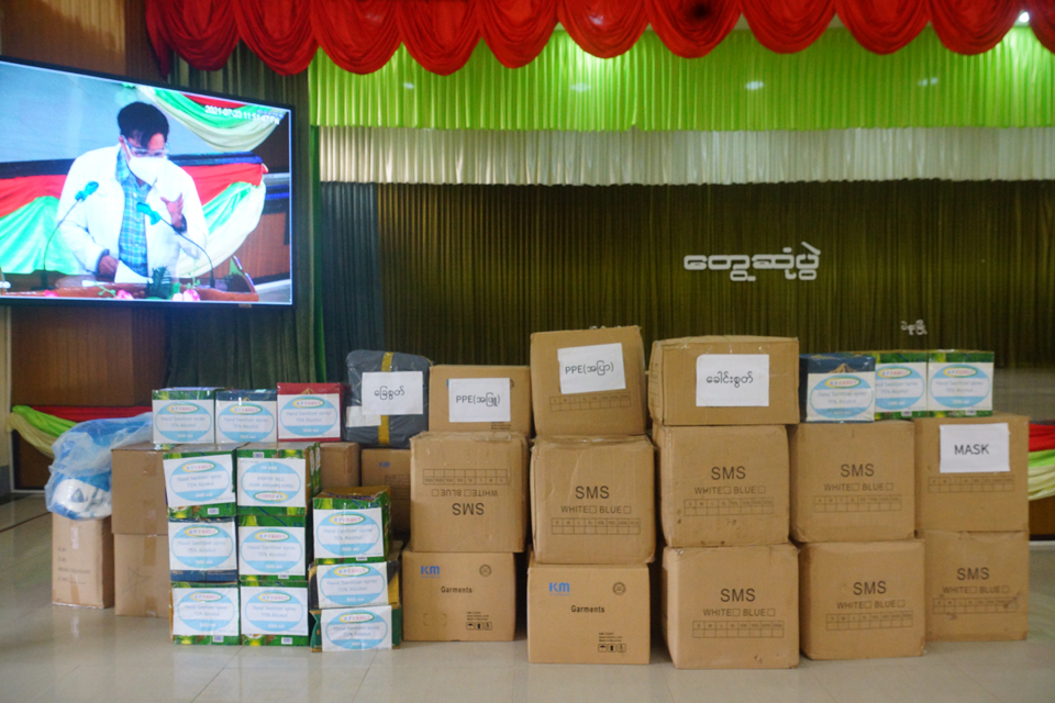 ထို့နောက် ပဲခူးတိုင်းဒေသကြီးစီမံအုပ်ချုပ်ရေးကောင်စီဥက္ကဋ္ဌ ဦးမျိုးဆွေဝင်းသည် ပဲခူးမြို့နယ် အတွင်းရှိ ပရဟိတအသင်းအဖွဲ့(၂၂)ဖွဲ့ကိုယ်စား မာတလိပရဟိတအသင်း ခေါင်းဆောင် ဦးဇင်လတ် အား PPE Level(1) (အဖြူ) ဝတ်စုံ(၉၀၀)စုံ၊ Mask (၁၀၀၀၀)ခု၊ PPE Level(2)(အပြာ) ဝတ်စုံ(၄၀၀၀)စုံ၊ ခြေစွတ် (၁၀၀၀)ခု၊ ခေါင်းစွတ်(၄၀၀၀)ခု၊ Hand Spary ဒါဇင်(၂၀)၊ Hand Gel (၁)ပေပါနှင့် ထောက်ပံ့ငွေ ကျပ်သိန်း(၁၁၀)တို့အား ထောက်ပံ့ပေးအပ်ခဲ့ပြီး ပရဟိတ အသင်းအဖွဲ့ တာဝန်ရှိသူများနှင့် ရင်းရင်း နှီးနှီး လိုက်လံနှုတ်ဆက် အားပေးစကား ပြောကြားခဲ့သည်။
