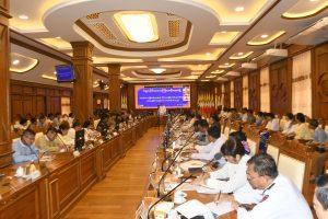 ထို့နောက် တိုင်းဒေသကြီး အစိုးရအဖွဲ့ဝင် ဝန်ကြီးများက လုံခြုံရေးဆိုင်ရာကိစ္စရပ်များ၊ အားကစားနှင့် ပညာရေးဆိုင်ရာကိစ္စရပ်များ၊ လမ်းပန်းဆက်သွယ်ရေးဆိုင်ရာကိစ္စရပ်များအား ကဏ္ဍအလိုက် တင်ပြခဲ့ကြ သည်။ ၎င်းနောက် တိုင်းဒေသကြီးအစိုးရအဖွဲ့ အတွင်းရေးမှူးက ပြည်ထောင်စုအစိုးရအဖွဲ့ရုံး၏ ညွှန်ကြားချက် များအား ဖတ်ကြားရှင်းလင်းပြောကြားခဲ့သည်။