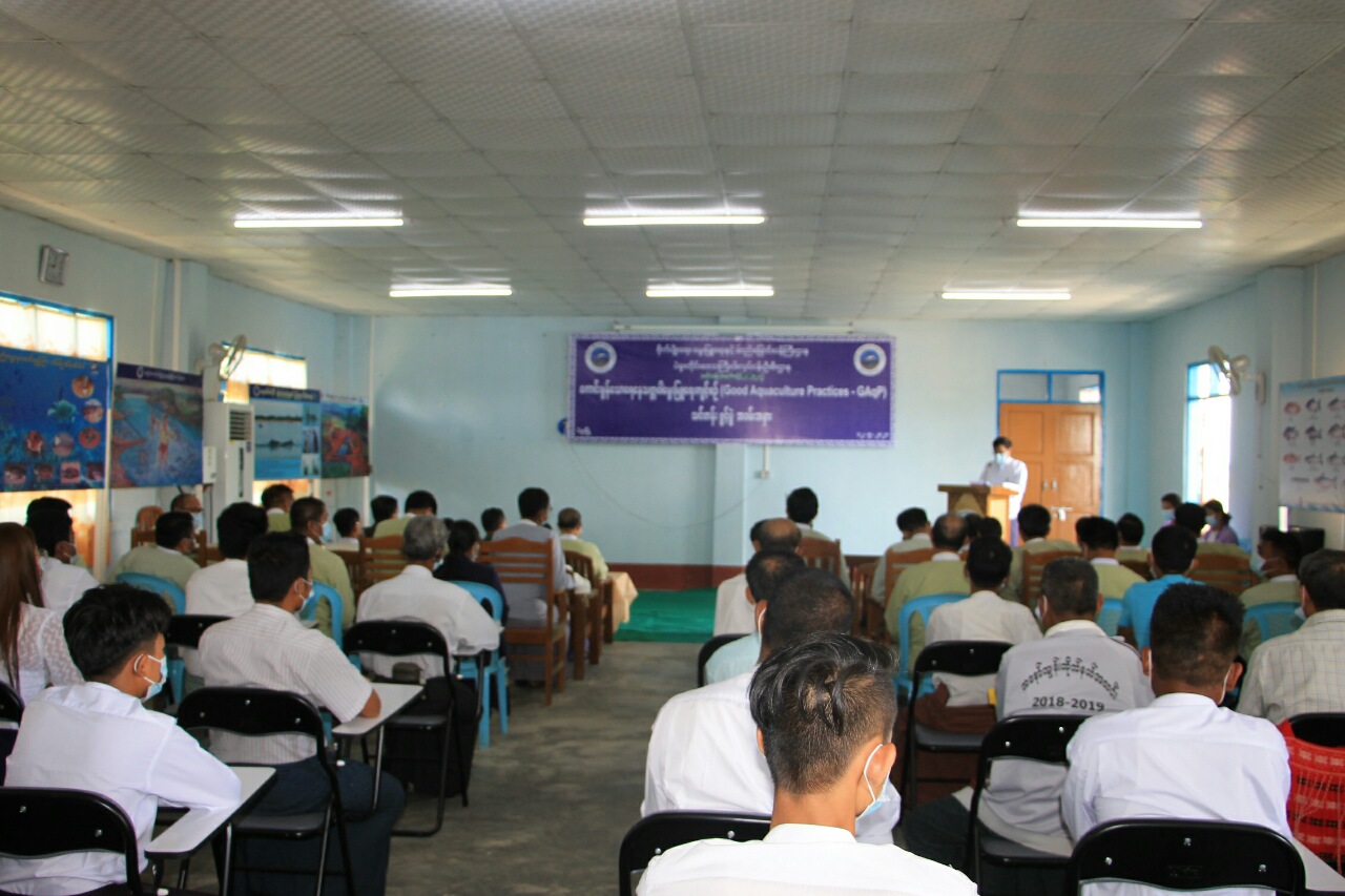 အဆိုပါ ကောင်းမွန်သောရေနေသတ္တဝါ မွေးမြူရေးအသိပညာပေး(GAqP) သင်တန်းအား မေလ(၁၂)ရက်နေ့မှ (၁၄)ရက်နေ့အထိ ဘေးဥပါဒ်ကင်းစင်သည့် ရေထွက်ပစ္စည်းများဖြစ်အောင် မွေးမြူထုတ်လုပ်သည့် နည်းလမ်းများ၊ နည်းပညာများကို သင်ကြားပေးမည်ဖြစ်ပြီး ငါးလုပ်ငန်း ဦးစီးဌာနမှ ဝန်ထမ်းသင်တန်းသား/သူ(၁၇)ဦး၊ လုပ်ငန်းရှင်(၁၃)ဦး၊ စုစုပေါင်းသင်တန်း သား/သူ (၃၀)ဦးတက်ရောက်ကြကြောင်း သတင်းရရှိသည်။