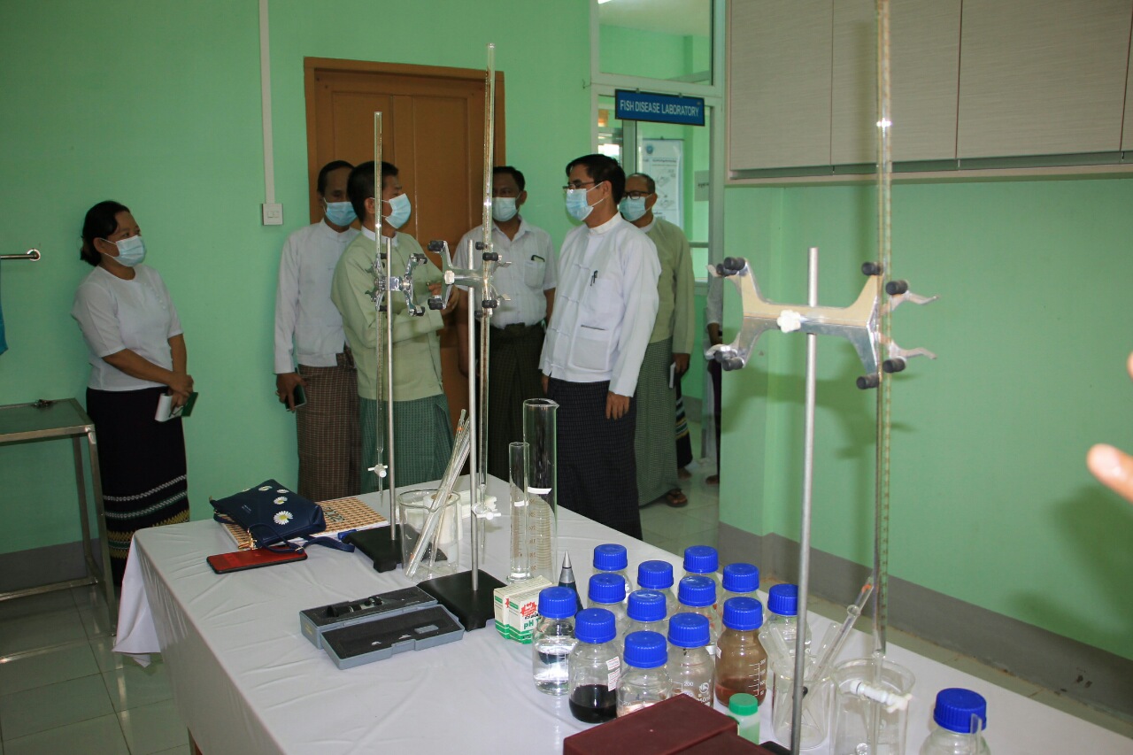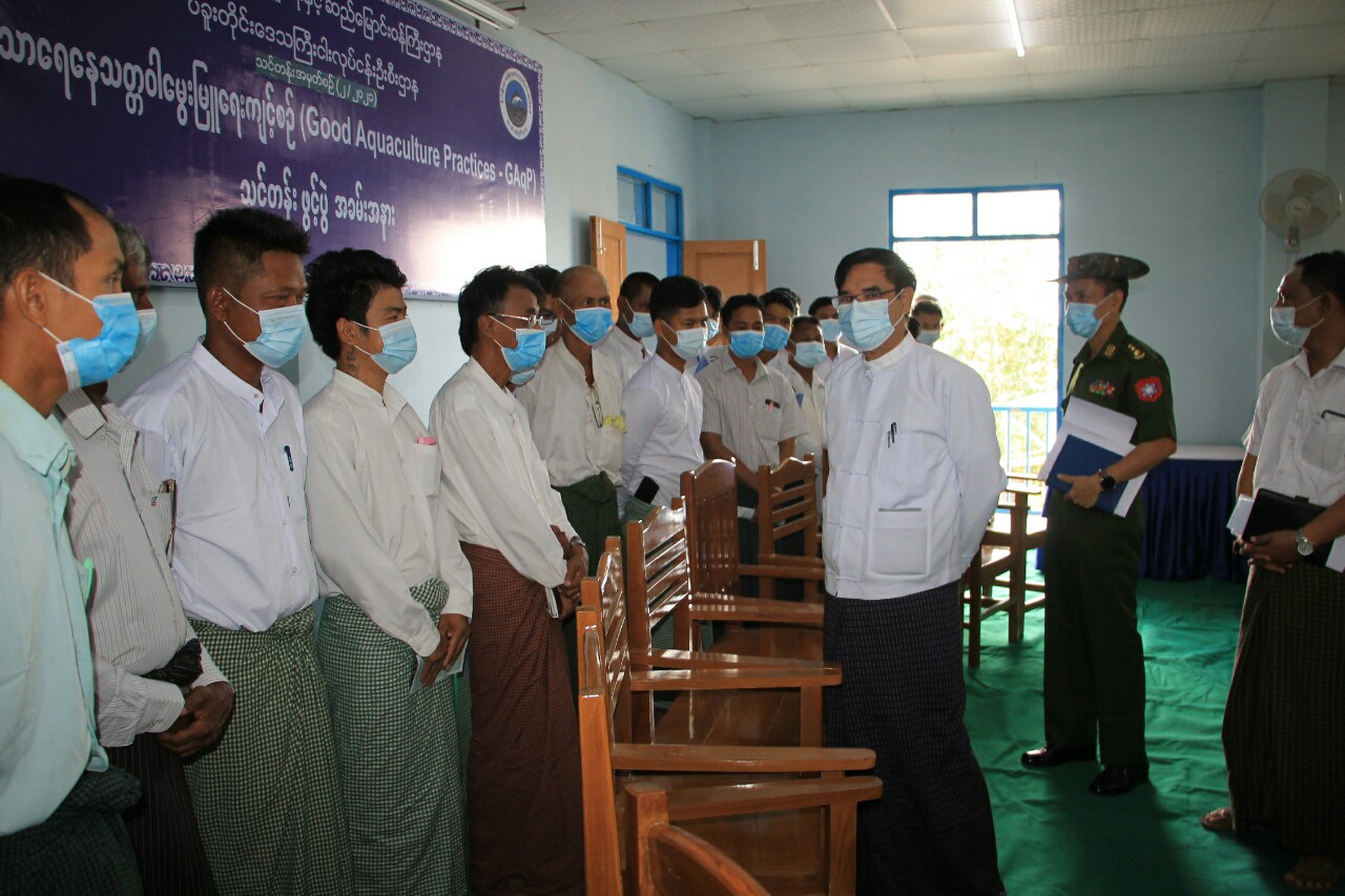 ထို့နောက် ပဲခူးတိုင်းဒေသကြီးငါးလုပ်ငန်းဦးစီးဌာန၊ တိုင်းဒေသကြီးဦးစီးဌာနမှူး ဦးထွန်းဝင်းမြင့် က ကောင်းမွန်သောရေနေသတ္တဝါ မွေးမြူရေးအသိပညာပေး(GAqP) သင်တန်း ဖွင့်လှစ် ရခြင်းနှင့်ပတ်သက်၍ ရှင်းလင်းတင်ပြပြီး အမှတ်တရစုပေါင်းဓာတ်ပုံရိုက်ကူးကာ သင်တန်းကျောင်း အတွင်းရှိ သင်တန်းသားအိပ်ဆောင်၊ ထမင်းစားဆောင်နှင့် ငါးရောဂါရှာဖွေရေး ဓာတ်ခွဲခန်းတို့အား လှည့်လည်ကြည့်ရှုခဲ့ကြသည်။