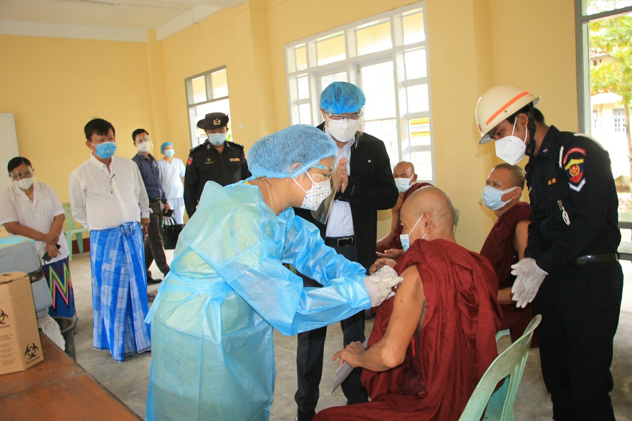 ပဲခူးတိုင်းဒေသကြီး ဝန်ကြီးချုပ် ဦးမျိုးဆွေဝင်းသည် ညောင်လေးပင်မြို့နယ်အတွင်း ကိုဗစ်-၁၉ ရောဂါကာကွယ်ဆေးထိုးနှံပေးမှုအား သွားရောက်ကြည့်ရှုအားပေးခဲ့ပြီးနောက် မြို့နယ်အဆင့် တာဝန်ရှိသူ များနှင့်တွေ့ဆုံ၍ သံဃာတော်များ၊ သီလရှင်များ ကာကွယ်ဆေး ထိုးနှံပေးရာတွင် သီးခြားကျောင်းတိုက်၌ စုရပ်လုပ်၍ ထိုးနှံပေးရန်၊ ကိုဗစ်-၁၉ ရောဂါကာကွယ် ဆေးထိုးနှံသည့်နေရာများတွင် လုံခြုံရေး အထူးဂရုပြုဆောင်ရွက်ရန်၊ ညောင်လေးပင်ဆေးရုံဝန်းအတွင်း Oxygen Plant တပ်ဆင်ပေးမည်ဖြစ်၍ မြေနေရာသတ်မှတ်ထားရန်နှင့် အောက်စီဂျင်လိုအပ်ချက်များအပေါ် အချိန်မီရရှိနိုင်ရေး ခရိုင်စီမံအုပ်ချုပ် ရေးအဖွဲ့ ဥက္ကဋ္ဌနှင့် တိုက်ရိုက်ချိတ်ဆောင်ရွက်ရန်၊ ကိုဗစ်-၁၉ ရောဂါကာကွယ်ဆေး ထိုးနှံရမည့်သတ်မှတ်အုပ်စု (၁၂)စုမှ အကျုံးဝင်မည့်သူများသိရှိစေရန်အတွက် ရပ်ကွက်/ကျေးရွာများအထိ ကျယ်ကျယ်ပြန့်ပြန့် အသိပေးဆောင်ရွက်သွားရန်၊ ရပ်ကွက်အတွင်း သေဆုံးသွားသောသူများအား ကိုဗစ်-၁၉ ရောဂါပိုး ရှိ/မရှိ စစ်ဆေးပြီး ပိုးတွေ့ရှိပါက သေဆုံးသူနှင့် ထိတွေ့ခဲ့သော Connect Person များအား ဆက်လက်ရှာဖွေ စစ်ဆေးသကဲ့သို့ ရပ်ကွက်/ ကျေးရွာများအတွင်း ဖျားနာနေသူများရှိရာသို့ Mobile Swab Van ဖြင့် သွားရောက်စစ်ဆေးပြီး ပိုးတွေ့လူနာများအား ဆေးရုံတက်ရောက်ကုသနိုင်ရေး စီစဉ်ဆောင်ရွက် ရန်၊ သေဆုံးလူနာများအား ကိုဗစ်-၁၉ စည်းကမ်းနှင့်အညီ ကျန်းမာရေးဝန်ကြီးဌာန ညွှန်ကြားချက်များ အတိုင်း သင်္ဂြိုလ်နိုင်ရေး Death Body Bag များ ဝယ်ယူထားရန်၊ စေတနာ့ဝန်ထမ်းနှင့် ပရဟိတအဖွဲ့များ အတွက် ကျန်းမာရေးသုံး အကာအကွယ်ပစ္စည်းများ လိုအပ်မှုမရှိစေရေး အချိန်မီဖြည့်ဆည်းပေးရန်နှင့် လူစည်ကားရာ ဈေးများအား အနည်းဆုံး(၆) ပေခြား၍ ကွင်းပြင်များ၌ ယာယီဈေး သတ်မှတ်ရောင်းချ ရန်တို့အား လမ်းညွှန်မှာကြားခဲ့သည်။