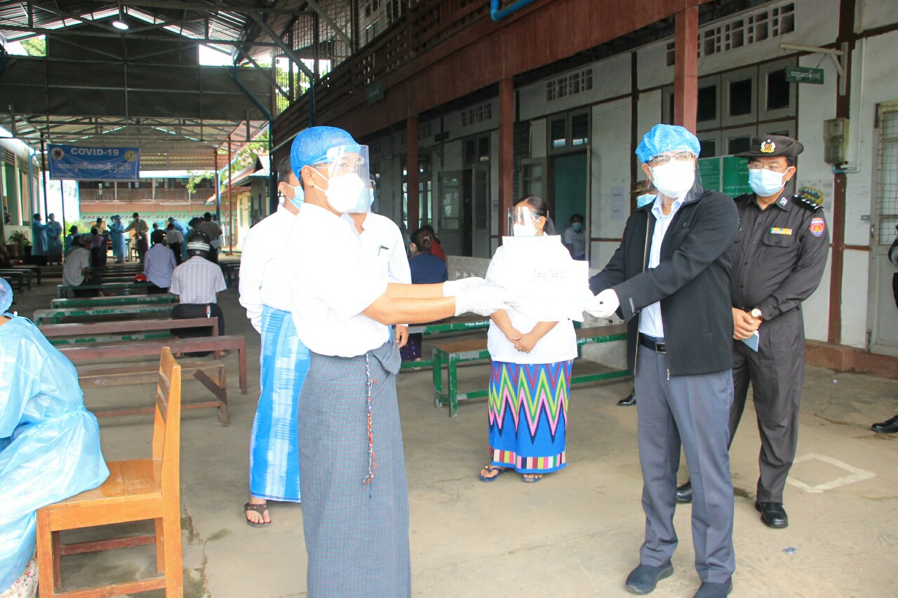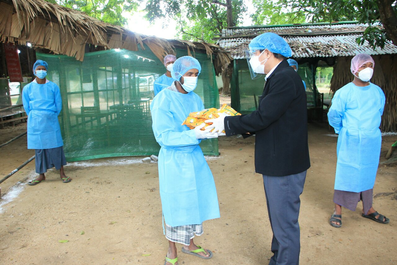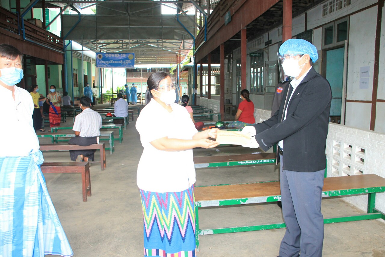 ယင်းနောက် ပဲခူးတိုင်းဒေသကြီး ဝန်ကြီးချုပ် ဦးမျိုးဆွေဝင်းသည် ပဲခူးမြို့နယ်၊ ဘုရားကြီးမြို့၊ စက်မှုလယ်ယာရုံးရှိ နေရပ်ပြန်မြန်မာနိုင်ငံသားများ လက်ခံရေးစခန်းသို့ ရောက်ရှိခဲ့ရာ ထိုင်းနိုင်ငံမှ နေရပ်ပြန်လာသူများ ကျန်းမာရေး၊ တည်ခိုနေထိုင်ရေးနှင့် သယ်ယူပို့ဆောင်ရေးတို့အား စီစဉ်ဆောင်ရွက် ပေးခဲ့ပြီး စေတနာ့ဝန်ထမ်းများအား အားပေးစကားပြောကြားကာ အသင့်သောက် မြန်မာ့ရိုးရာ လက်ဖက်ရည်ထုတ်များအား ထောက်ပံ့ပေးအပ်ခဲ့သည်။