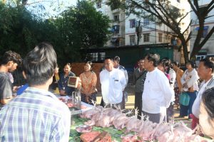 Home / တိုင်းဒေသကြီးအစိုးရအဖွဲ့နှင့် ဌာနဆိုင်ရာများ / ပဲခူးတိုင်းဒေသကြီး ဝန်ကြီးချုပ် ဦးမျိုးဆွေဝင်း အပတ်စဉ် နိုင်ငံ့ဝန်ထမ်းအိမ်ရာများ၌ အခြေခံစားသုံးကုန် နှင့် အသား/ငါး/ဥ ဟင်းသီးဟင်းရွက်များ ဈေးနှုန်းသက်သာစွာဖြင့် ရောင်းချပေးနေမှုအား ကြည့်ရှုအားပေး