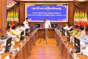 ထို့နောက် တက်ရောက်လာသည့် ခရိုင်/မြို့နယ်စီမံခန့်ခွဲရေးနှင့်အုပ်ချုပ်ရေးကော်မတီ ဥက္ကဋ္ဌများက မြို့နယ်အလိုက် စိုက်ပျိုးရေး၊ မွေးမြူရေးနှင့် MSMEs လုပ်ငန်းများ ဖွံ့ဖြိုးတိုးတက်စေရေး ဆောင်ရွက်လျက် ရှိသည့် အခြေအနေနှင့် ဆက်လက်ဆောင်ရွက်သွားမည့် လုပ်ငန်းစီမံချက်များအား Power Point ဖြင့် ရှင်းလင်းတင်ပြခဲ့ကြရာ သက်ဆိုင်ရာတိုင်းဒေသကြီးအဆင့် ဌာနဆိုင်ရာများက ကဏ္ဍအလိုက် ဖြည့်စွက် ရှင်းလင်းတင်ပြခဲ့ကြသည်။
