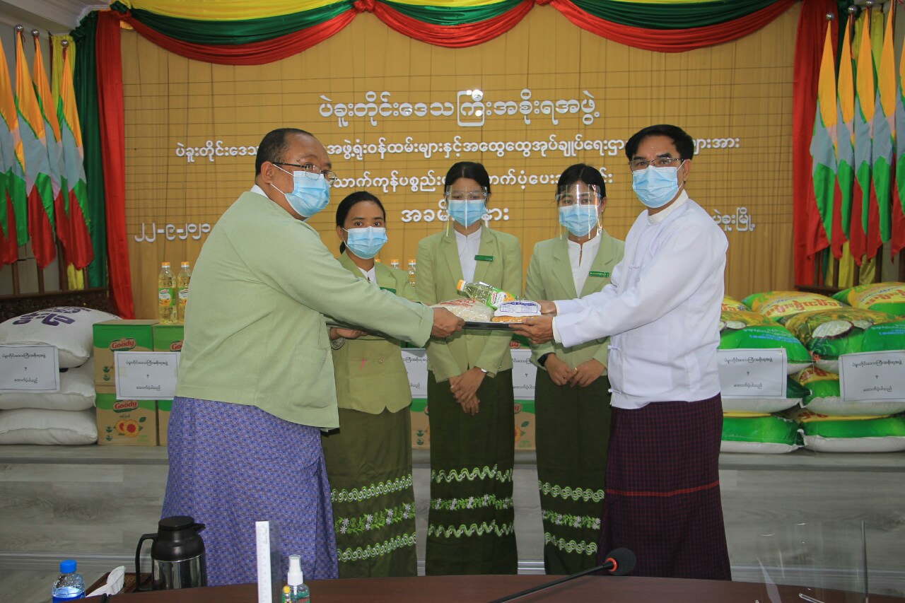 ထို့နောက် တိုင်းဒေသကြီး ဝန်ကြီးချုပ်က ပဲခူးတိုင်းဒေသကြီး အစိုးရအဖွဲ့ရုံး ဝန်ထမ်းများနှင့် အထွေထွေအုပ်ချုပ်ရေးဦးစီးဌာန ဝန်ထမ်းများအတွက် ဆန်(၁၈)အိတ်၊ ဆီ(၂၁၅)ဗူး၊ ကုလားပဲ(၃)အိတ်၊ ဆား(၃)အိတ်တို့အား ထောက်ပံ့ပေးအပ်ခဲ့ရာ ဝန်ထမ်းများကိုယ်စား ပဲခူးတိုင်းဒေသကြီးအထွေထွေ အုပ်ချုပ်ရေးဦးစီးဌာန၊ တိုင်းဒေသကြီးအုပ်ချုပ်ရေးမှူးနှင့် ဝန်ထမ်းများမှ လက်ခံရယူခဲ့ကြောင်း သတင်းရရှိသည်။