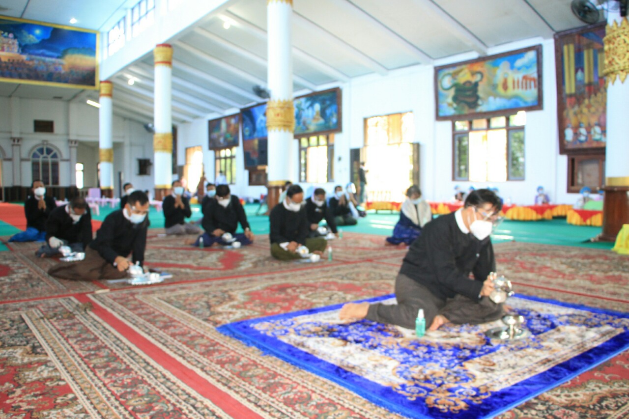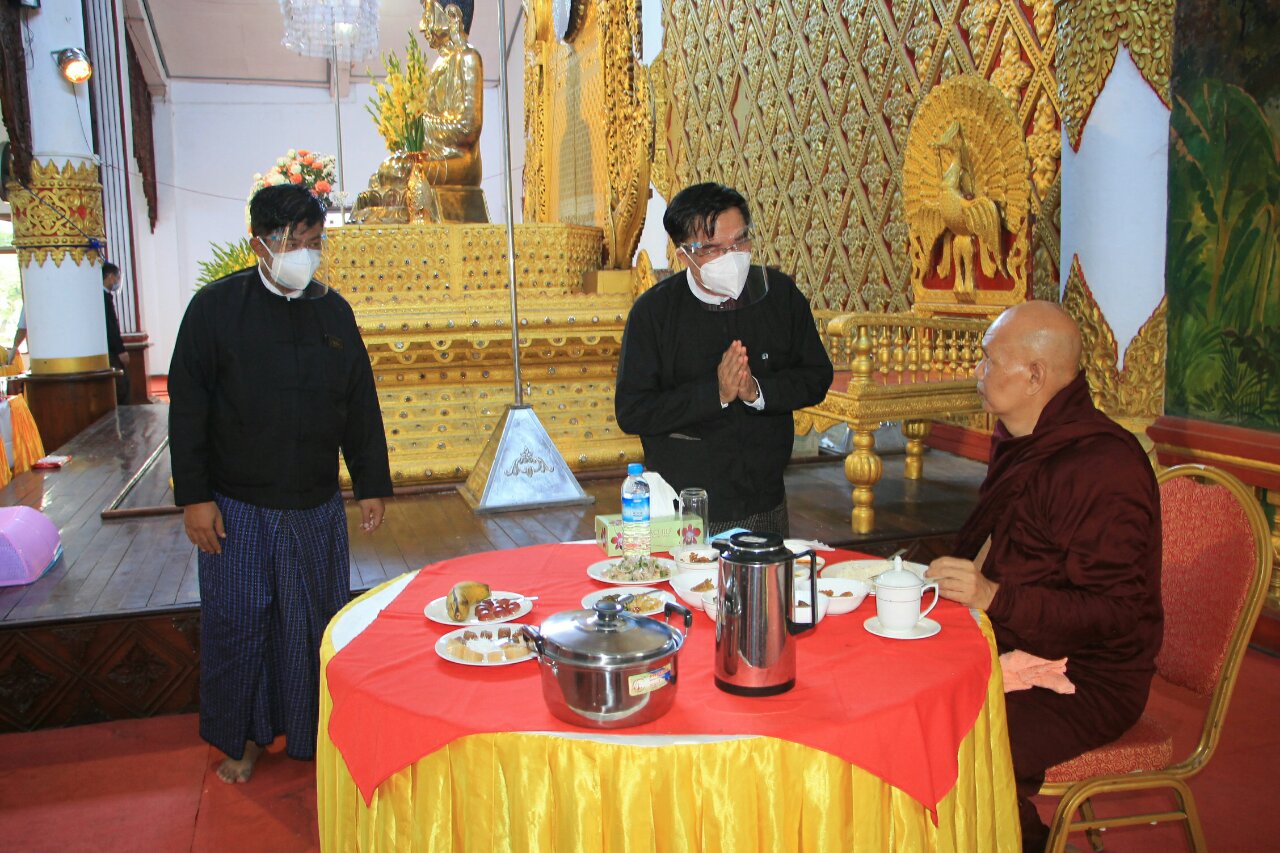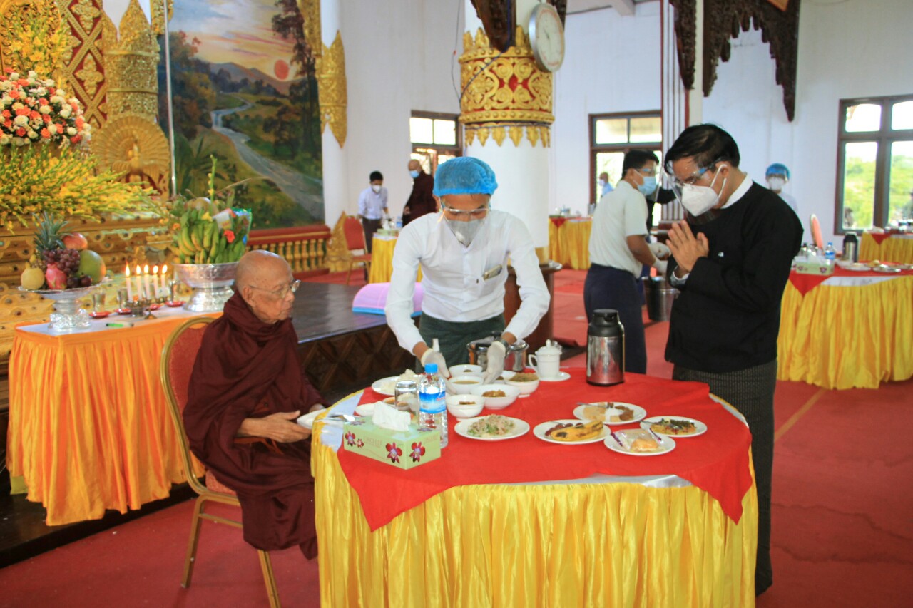 ယင်းနောက် ဗုဒ္ဓသာသနံ စိရံတိဋ္ဌတု သုံးကြိမ်ရွတ်ဆိုဆုတောင်း၍ အခမ်းအနားကိုရုပ်သိမ်းပြီး ဆရာတော်၊ သံဃာတော်အရှင်သူမြတ်များအား ပဲခူးတိုင်းဒေသကြီးစီမံအုပ်ချုပ်ရေးကောင်စီဥက္ကဋ္ဌ ဦးမျိုးဆွေဝင်းနှင့် ကောင်စီဝင်များက နေ့ဆွမ်းဆက်ကပ်လှူဒါန်းခဲ့ကြကြောင်း သတင်းရရှိသည်။