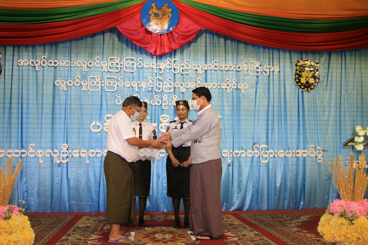 ကျေးရွာအုပ်စု၊ ထန်းတောကြီးကျေးရွာအုပ်စုနှင့် ဝါးပြန်ကုန်းကျေးရွာအုပ်စု အုပ်ချုပ်ရေးမှူးများထံ ပန်းခင်းစီမံချက်ဖြင့် ပြုလုပ်ထားသည့် နိုင်ငံသားစိစစ်ရေးကတ်ပြား (၁၀၉၆)ခုအား ပေးအပ်ခဲ့ကြ သည်။