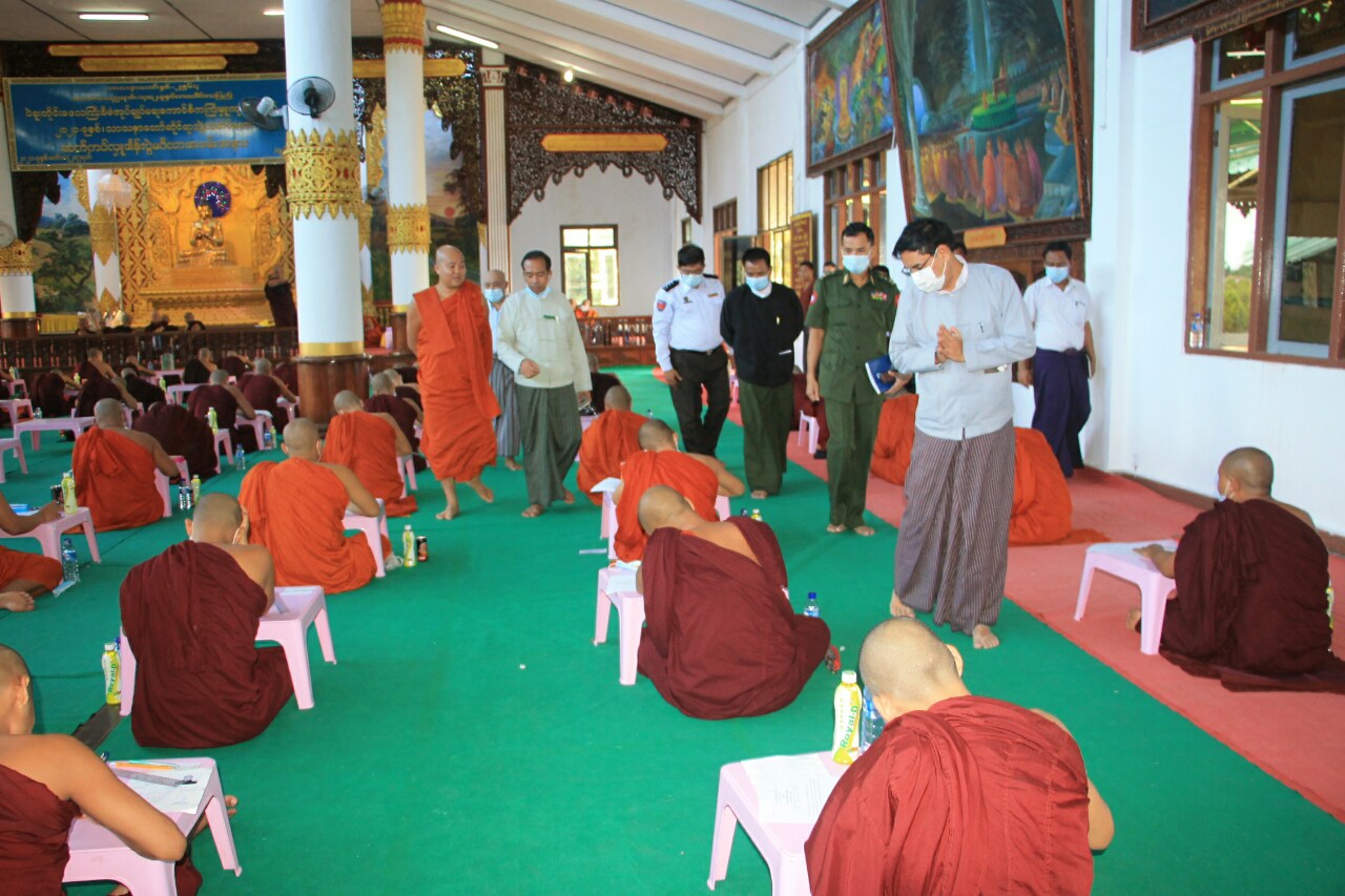 ဆက်လက်၍ ပဲခူးတိုင်းဒေသကြီးစီမံအုပ်ချုပ်ရေးကောင်စီ ဥက္ကဋ္ဌ ဦးမျိုးဆွေဝင်းနှင့်အဖွဲ့ သည် အစိုးရနိကာယ်စားမေးပွဲ ကြီးကြပ်နာယက ဆရာတော်ကြီးများအား သွားရောက်ဖူးမြှော်ခဲ့ပြီး ဖြေဆိုနေကြသည့် သံဃာတော်များအား အအေးဆက်ကပ်လှူဒါန်းခဲ့ကာ ပဲခူးမြို့၊ ဗုဒ္ဓအသံဓိမ္မဗိမာန် တော်ကြီး ပြန်လည်ပြုပြင်မွန်းမံ ဆောင်ရွက်နေမှုအား ကြည့်ရှုစစ်ဆေးခဲ့သည်။