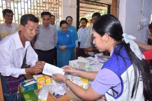 ထို့နောက် တိုင်းဒေသကြီး ဝန်ကြီးချုပ်နှင့် ဇနီးတို့သည် ဆေးကုသမှုလာရောက်ခံယူကြသူများအား နေ့လည်စာထမင်းဗူးနှင့် ရေသန့်တို့အား ပေးအပ်ခဲ့ပြီး အထူးကုဆရာဝန်ကြီးများ၊ ကျန်းမာရေးဝန်ထမ်းများနှင့် ကူညီဆောင်ရွက်ခဲ့ကြသည့် ပရဟိတအဖွဲ့များအား ဂုဏ်ပြုချီးမြှင့်ငွေများ ပေးအပ်ခဲ့သည်။