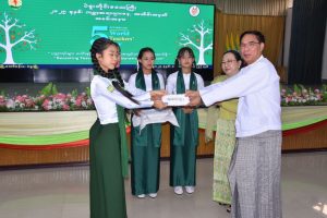 ယင်းနောက် အမှတ်(၈) အခြေခံပညာ အထက်တန်းကျောင်းမှ ကျောင်းသား/သူများက “ပန်းကလေး များရဲ့ဥယျာဉ်မှူး” သီချင်းဖြင့်လည်းကောင်း၊ အမှတ်(၂)အခြေခံပညာအထက်တန်းကျောင်းမှ ကျောင်းသား/ သူများက “လမ်းပြကြယ်” သီချင်းဖြင့် သီဆိုဖျော်ဖြေခဲ့ကြရာ တိုင်းဒေသကြီး ဝန်ကြီးချုပ် ဦးမျိုးဆွေဝင်းနှင့် ဇနီးဒေါ်စိုးစိုးသက်တို့က ဖျော်ဖြေရေးကျောင်းသား/သူ များအား ဂုဏ်ပြုငွေပေးအပ်ခဲ့ပြီး အခမ်းအနား တက်ရောက်လာသူများအား ရင်းရင်းနှီးနှီး လိုက်လံနှုတ်ဆက် အားပေးစကား ပြောကြားခဲ့ကြောင်း သတင်း ရရှိသည်။