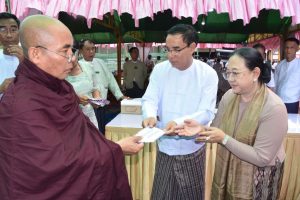 သံဃမဟာပဝါရဏာပြုတော်မူကြသည့် ရဟန်း၊သံဃာများအား ပဲခူးတိုင်းဒေသကြီး ဝန်ကြီးချုပ် ဦးမျိုးဆွေဝင်နှင့် ဇနီး ဒေါ်စိုးစိုးသက်၊ တိုင်းဒေသကြီး တရားလွှတ်တော် တရားသူကြီးချုပ် ၊ အစိုးရအဖွဲ့ဝင် ဝန်ကြီးများနှင့် ၎င်းတို့၏ ဇနီးများ၊ တပ်ရင်း/တပ်ဖွဲ့မိသားစုများ၊ ဌာနဆိုင်ရာများနှင့် စေတနာရှင်၊ အလှူရှင်များက နဝကမ္မအလှူငွေများ၊ လှူဖွယ်ပစ္စည်းများနှင့် ဆွမ်းဆန်တော်များ လောင်းလှူခဲ့ကြကြောင်း သိရှိရသည်။