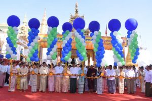 ပြည်မြို့၊ လေးဆူဓါတ်ပျော်ရွှေဆံတော်စေတီတော်မြတ်ကြီး၌ ယမန်နေ့၊ နံနက်ပိုင်းက တောင်ဘက် စောင်းတန်းအသစ်ဖွင့်လှစ်ခြင်းနှင့် စက်လှေကားအသစ်ဖွင့်လှစ်ခြင်း ကုသိုလ်ပြု ရေစက်ချမင်္ဂလာအခမ်းအနား ကျင်းပပြုလုပ်ရာ ပဲခူးတိုင်းဒေသကြီးအစိုးရအဖွဲ့၊ ဝန်ကြီးချုပ် ဦးမျိုးဆွေဝင်းနှင့်ဇနီး တက်ရောက်ခဲ့ကြသည်။