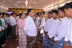 ပဲခူးမြို့၊ မြို့တော်ခန်းမ၌ ယမန်နေ့၊ မွန်းလွဲပိုင်းက ၂၀၂၅ ခုနှစ်၊ (၂၆)ကြိမ်မြောက် မြန်မာ့ရိုးရာ ယဉ်ကျေးမှု အဆို၊ အက၊ အရေး၊ အတီးပြိုင်ပွဲသို့ ပဲခူးတိုင်းဒေသကြီးကိုယ်စားပြု သွားရောက် ယှဉ်ပြိုင်မည့် အဖွဲ့အား အောင်နိုင်ရေးအလံပေးအပ်ခြင်း အခမ်းအနား ကျင်းပပြုလုပ်ခဲ့ရာ ပဲခူးတိုင်းဒေသကြီး ဝန်ကြီးချုပ် ဦးမျိုးဆွေဝင်းနှင့်ဇနီး ဒေါ်စိုးစိုးသက်တို့ တက်ရောက်ချီးမြှင့်ခဲ့သည်။