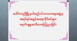 Read More »လက်ပံတန်းမြို့နယ်စည်ပင်သာယာရေးအဖွဲ့မှ အရပ်ရပ်အခွင့်အရေးလိုင်စင်များ ရောင်းချခြင်း