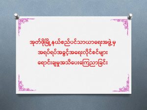 အုတ်ဖို မြို့နယ်စည်ပင်သာယာရေးအဖွဲ့မှ အရပ်ရပ်အခွင့်အရေးလိုင်စင်များအား ဈေးပြိုင်စနစ်/ သက်တမ်းတိုးစနစ်ဖြင့် ရောင်းချပေးသွားမည်ဖြစ်ကြောင်း ပြည်တွင်းလုပ်ငန်းရှင်များ သိရှိနိုင်ရေး အသိပေး ကြေညာအပ်ပါသည်-
