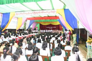 ရှေးဦးစွာ အမှတ်(၃)အခြေခံပညာအထက်တန်းကျောင်းမှ ဘင်ခရာသံစုံတီးဝိုင်းဖြင့် Grade 12 ကျောင်းသား/သူများက “ကျောင်းသီချင်း”ဖြင့်လည်းကောင်း၊ Grade 10 ကျောင်းသား/သူများက “အမျိုးသား နေ့ကြွေးကြော်သံ”သီချင်းဖြင့်လည်းကောင်း၊ Grade 8 ကျောင်းသူ မအိမြတ်ချယ်က “စကားဝါမြေ”သီချင်း ဖြင့်လည်းကောင်း၊ အဆို၊ အက၊ အရေး၊ အတီးပြိုင်ပွဲ ရွှေတံဆိပ်သုံးဆုရှင် တေးသံရှင် မဧကရီအောင်က “တောသူအချစ်” သီချင်းဖြင့်လည်းကောင်း၊ Grade 9 ကျောင်းသူ မမေဘုန်းမြတ်က “ပန်းရည်ဘဏ်တိုက်” သီချင်းဖြင့်လည်းကောင်း သီဆိုကပြဖျော်ဖြေတင်ဆက်ခဲ့ကြသည်။ ၎င်းနောက် တိုင်းဒေသကြီး ဝန်ကြီးချုပ်နှင့် ဇနီးတို့က တီးခတ်သီဆိုကပြဖျော်ဖြေတင်ဆက်ခဲ့ကြသည့် ကျောင်းသား/သူများအား ဂုဏ်ပြုဆုများနှင့် ဆရာ/ ဆရာမများအတွက် အဝတ်အထည်များ ချီးမြှင့်ပေးအပ်ခဲ့ကြောင်း သတင်းရရှိသည်။