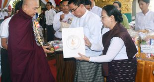 ပဲခူး ဒီဇင်ဘာ ၃ ပဲခူးမြို့၊ ရှေးဟောင်းသမိုင်းဝင် ဆုတောင်းပြည့် ရွှေသာလျာင်းဗုဒ္ဓရုပ်ပွားတော်မြတ်ကြီး၌ နှစ်(၁၀၀) ပြည့် ဗုဒ္ဓပူဇနိယပွဲတော်၊ (၃၆)ကြိမ်မြောက် ပဋ္ဌာန်းကျမ်းမြတ်ရွတ်ဖတ်ပူဇော်ပွဲ၊ ဆွမ်းတော်ကြီးတင် ကပ်လှူ ပူဇော်ပွဲနှင့် ဆွမ်းဆန်စိမ်းလောင်းလှူပူဇော်ပွဲအား ဒီဇင်ဘာလ(၃)ရက်နေ့၊ မွန်းလွဲပိုင်းက ကျင်းပပြုလုပ်ခဲ့ရာ ပဲခူးတိုင်းဒေသကြီး ဝန်ကြီးချုပ် ဦးမျိုးဆွေဝင်းနှင့် ဇနီး ဒေါ်စိုးစိုးသက်တို့ တက်ရောက်လောင်းလှူပူဇော် ခဲ့ကြသည်။ ရှေးဦးစွာ ပဲခူးတိုင်းဒေသကြီးအစိုးရအဖွဲ့၊ ဝန်ကြီးချုပ် ဦးမျိုးဆွေဝင်းနှင့် ဇနီး ဒေါ်စိုးစိုးသက်၊ အစိုးရ အဖွဲ့ဝင်များနှင့် ၎င်းတို့သည် ရှေးဟောင်းသမိုင်းဝင် ဆုတောင်းပြည့် ရွှေသာလျာင်းဗုဒ္ဓရုပ်ပွားတော်မြတ်ကြီး၏ ရင်ပြင်တန်စောင်း၌ ဆွမ်းဆန်စိမ်းလောင်းလှူပူဇော်မည့် ဌာနဆိုင်ရာများ၊ တပ်ရင်း/တပ်ဖွဲ့များ၊ စေနာရှင် ပြည်သူများနှင့် လူမှုရေးအသင်းအဖွဲ့များတို့၏ မဏ္ဍပ်အသီးသီးသို့ လိုက်လံကြည့်ရှုအားပေးခဲ့ကြသည်။ ထို့နောက် တိုင်းဒေသကြီး ဝန်ကြီးချုပ်နှင့် ဇနီး၊ တာဝန်ရှိသူများက ဆန်+ဆီ+ဆေးအပါဝင် ပစ္စည်း (၁၈)မျိုးတို့အား ကြွရောက်လာသည့် သံဃာအပါး(၁၃၀)နှင့် …