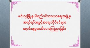 Read More »ညောင်လေးပင်မြို့နယ်စည်ပင်သာယာရေးအဖွဲ့မှ အရပ်ရပ်အခွင့်အရေးလိုင်စင်များ ရောင်းချခြင်း