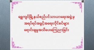 Read More »ရွှေကျင်မြို့နယ်စည်ပင်သာယာရေးအဖွဲ့မှ အရပ်ရပ်အခွင့်အရေးလိုင်စင်များ ရောင်းချခြင်း