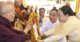 ပဲခူး ဇန်နဝါရီ ၁၆ ပဲခူးတိုင်းဒေသကြီးအစိုးရအဖွဲ့မှ ကြီးမှူးကျင်းပသည့် (ပဥ္စမအကြိမ်)မြောက် ဆေးပဌာန်းရွတ်ဖတ် ပူဇော်လှူဒါန်းပွဲ ဖွင့်ပွဲအခမ်းအနားကို ဇန်နဝါရီလ(၁၆) ရက်နေ့ နံနက်ပိုင်းအချိန်က ပဲခူးမြို့ ရွှေမော်ဓော စေတီရင်ပြင်ရှိ ရွှေကျောင်းတော် ကျောက်ပန်းတောင်းဓမ္မာရုံတော်ကြီး၌ ကျင်းပပြုလုပ်ခဲ့ ပဲခူးတိုင်းဒေသကြီး ဝန်ကြီးချုပ် ဦးမျိုးဆွေဝင်းနှင့် ဇနီး ဒေါ်စိုးစိုးသက်တို့ တက်ရောက်ကြည်ညိုခဲ့သည်။ အခမ်းအနားသို့ ရွှေမော်ဓောစေတီတော်မြတ်ကြီး၏ ဩဝါဒါစရိယ ဆရာတော်ကြီးများ၊ ဆေးပဌာန်း ရွတ်ဖတ် ပူဇော်ကြမည့် ဆရာတော်၊ သံဃာတော်များ၊ ပဲခူးတိုင်းဒေသကြီးအစိုးရအဖွဲ့၊ ဝန်ကြီးချုပ်နှင့်ဇနီး၊ တိုင်းဒေသကြီးတရားလွှတ်တော်တရားသူကြီးချုပ်၊ အစိုးရအဖွဲ့ဝန်ကြီးများနှင့်၎င်းတို့၏ဇနီးများ၊ ဥပဒေချုပ်၊ အစိုးရအဖွဲ့အတွင်းရေးမှူးနှင့် တိုင်းဒေသကြီး၊ ခရိုင်၊ မြို့နယ်အဆင့်ဌာနဆိုင်ရာများ၊ ဂေါပကအဖွဲ့များ တက်ရောက်ကြပြီး နမောတဿ သုံးကြိမ်ရွတ်ဆို ဘုရားကန်တော့၍ အခမ်းအနားအား ဖွင့်လှစ်ခဲ့ကြသည်။ ထို့နောက် ပဲခူးမြို့၊ ရွှေဂူကျောင်းဆရာတော်၊ ဘဒ္ဒန္တဉာဏိဿရ အရှင်သူမြတ်က မဟာပဋ္ဌာန်း ရောင်ခြည်တော်ဖွင့် ဘုရားပင့်ဂါထာတော် …