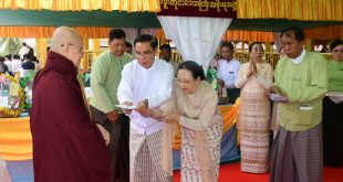 ပဲခူး ဇန်နဝါရီ ၂၂ ပဲခူးတိုင်းဒေသကြီးအစိုးရအဖွဲ့က ကြီးမှူးကျင်းပပြုလုပ်သည့် ပဉ္စမအကြိမ်မြောက် ဆေးပဌာန်းရွတ်ဖတ် ပူဇော်ပွဲ၊ အောင်ပွဲအခမ်းအနားကို ဇန်နဝါရီလ(၂၂)ရက်နေ့၊ နံနက်ပိုင်းက ပဲခူးမြို့ ဆုတောင်းပြည့်ရွှေမော်ဓော စေတီတော်မြတ်ကြီးရင်ပြင်တော်ရှိ ရွှေကျောင်းတော် ကျောက်ပန်းတောင်းဓမ္မာရုံ၌ ကျင်းပပြုလုပ်ရာ ပဲခူးတိုင်းဒေသကြီး ဝန်ကြီးချုပ် ဦးမျိုးဆွေဝင်းနှင့် ဇနီးဒေါ်စိုးစိုးသက်တို့ တက်ရောက်ကြည်ညိုခဲ့သည်။ ရှေးဦးစွာ “နမောတဿ” သုံးကြိမ်ရွတ်ဆို ဘုရားကန်တော့၍ အခမ်းအနားကိုဖွင့်လှစ်ပြီး ရွှေမော်ဓောစေတီတော်မြတ်ကြီး ဘဏ္ဍာတော်ထိန်း ဂေါပကအဖွဲ့ ဩဝါဒါစရိယ ပဲခူးမြို့၊ ကြခတ်ဝိုင်း စာသင်တိုက် ပဓာနနာယက၊ (အဂ္ဂမဟာပဏ္ဍိတ) ဘဒ္ဒန္တဉေယျဓမ္မာဘိဝံသ ဆရာတော် အရှင်သူမြတ်ထံမှ ပဲခူးတိုင်းဒေသကြီးဝန်ကြီးချုပ်နှင့်ဇနီး အမှူးပြုသော ဧည့်ပရိတ်သတ်များက ငါးပါးသီလ ခံယူဆောက်တည် ခဲ့ကြသည်။ ထို့နောက် ပဲခူးတိုင်းဒေသကြီးအစိုးရအဖွဲ့ ဝန်ကြီးချုပ် ဦးမျိုးဆွေဝင်းက သာသနာရေးဆိုင်ရာများ လျှောက်ထားပြီး ဩဝါဒစရိယဆရာတော်ကြီးများထံ တိုင်းဒေသကြီးဝန်ကြီးချုပ်နှင့်ဇနီးတို့က ဆေးပစ္စည်း အလှူတော်များ ဆက်ကပ်လှူဒါန်းခဲ့ကြသည်။ ၎င်းနောက် …