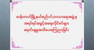Read More »ဇီးကုန်းမြို့နယ်စည်ပင်သာယာရေးအဖွဲ့မှ အရပ်ရပ်အခွင့်အရေးလိုင်စင်များ ရောင်းချခြင်း