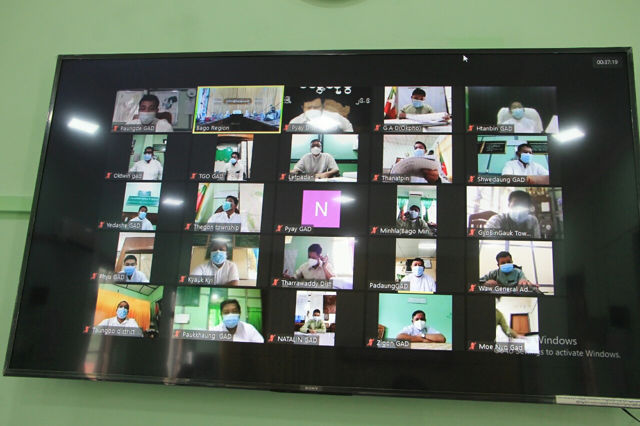 ပဲခူးတိုင်းဒေသကြီးစီမံအုပ်ချုပ်ရေးကောင်စီ ဥက္ကဋ္ဌ ဦးမျိုးဆွေဝင်း ဦးဆောင်၍ ဇူလိုင်လ(၅) ရက်နေ့၊ မွန်းလွဲ(၂)နာရီအချိန်က ပဲခူးတိုင်းဒေသကြီး COVID-19 ရောဂါ ထိန်းချုပ်ရေးနှင့် အရေးပေါ်တုံ့ပြန်ရေးကော်မတီ လုပ်ငန်းညှိနှိုင်းအစည်းအဝေး (၈/၂၀၂၁) အား Online Zoom Meeting System ဖြင့် ကျင်းပခဲ့သည်။